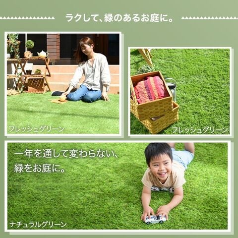 | 【1×10m:U字固定ピン24本入り】 【2×10m:U字固定ピン48本入り】 ※光の当たり方によって色味が異なる場合がございます。 ※生産時期によりわずかに色味に差異がございます。そのため並べてご使用される場合は一度に必要分をご購入いただくようオススメしております。 ※追加購入をご検討のお客様で、以前ご購入いただいたものがご不明な場合はお気軽にお問い合わせください。 ※生産時、大きめにカットしているため、奥行に最大10cm程度のばらつきがある場合がございます。 ※コンクリートに設置する場合は、専用の両面テープや接着剤での固定を行ってください。 ※2022年9月29日から、葉形をより強度・耐久性の高いC型に、また、よりリアル感を出す為に密度を44万本/m?にリニューアルしました。それに伴い、色味や見た目が以前のものと若干変わっております。リニューアル以前にご購入いただいて、現在買い足しをご検討いただいているお客様は、ご注意いただくようお願い致します。 ※2022年10月に密度と厚みを増やし葉形を変えてより耐久性のある高耐久の人工芝を追加して選べる2タイプ(高耐久タイプと繊細タイプ)となり、2023年5月31日に高耐久タイプのみの販売ページとなりました。 ※2023年12月21日からよりカラー名の変更を行い、夏色グリーンがフレッシュグリーンに、春・秋色グリーンがナチュラルグリーンになりました。実際の芝の色味に変更はございませんが、現在買い足しをご検討いただいているお客様は、ご注意いただくようお願い致します。 ※ |