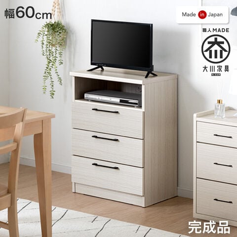 ダイニングからも見やすいハイタイプテレビ台 ・薄型設計で寝室やリビングにぴったり ・温かみのある木目デザイン ・DVDやゲームソフトの収納に便利な引き出し付き ・届いてすぐに使える完成品 ・安心の日本製 -大川家具- |