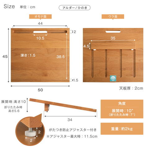 ・テーブルに置くだけ!正しい姿勢で、身体に優しく ・傾斜10°で背筋が伸びて、集中力UP ・オンライン授業で便利なデバイススタンド ・お好みにあわせて選べる3タイプ ┗温かみのある木目が美しいアルダー ┗爽やかな香りが特徴のひのき ┗広々使えるワイドサイズのパイン ・天板には抗菌・抗ウィルスの光触媒コーティング ・テレワークでのノートPCスタンドとしても使用可能 ・お子様でも持ち運べる軽量2kg・ 持ち手付き |