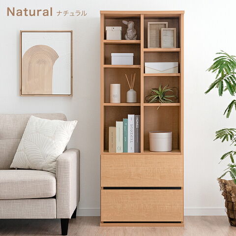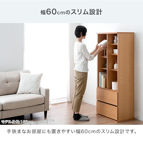 引き出し付き シェルフ 国産 完成品 幅 60cm 大川家具 リビング 収納 可動棚 オープン ラック 引き出し スリム 日本製 組み立て 不要 木製 シンプル 【超大型】51300175〔ナチュラル〕【予約】12月中旬/入荷後1~4週間でお届け