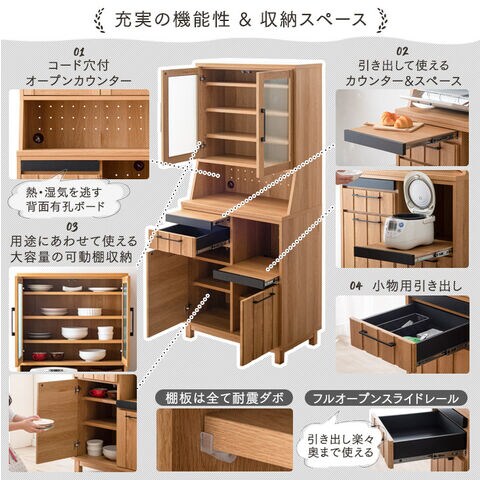 食器棚 幅80cm 完成品 大川家具 大容量 キッチンラック 引き出し 組み立て不要 奥行き40 キッチンボード レンジボード レンジラック 木製 カントリー おしゃれ キッチン収納 玄関渡し【後払/時間指定NG】 51900005