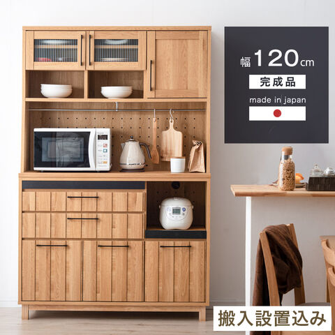 【搬入設置込み】食器棚 幅 120cm 完成品 大川家具 大容量 キッチンラック 引き出し 組み立て不要 奥行き40 キッチンボード レンジボード レンジラック 木製 カントリー おしゃれ キッチン収納【後払/時間指定NG】 99901210