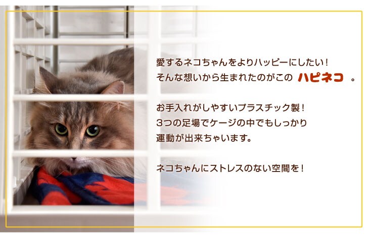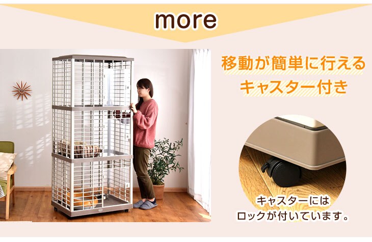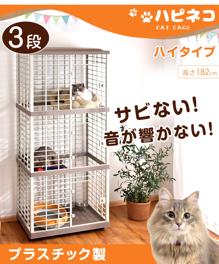 【即納】 キャットケージ 2段 高さ126cm【錆びない 音が響かない】プラスチック製 ロック式 キャスター付 ホワイト×ブラウン 52800000