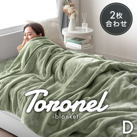 やみつきの肌触り Toronel《トロネル》2枚合わせ 毛布 ダブル 襟付き 厚手 洗える ブランケット 掛毛布 フランネル 暖かい エコテックス 58700129〔ライトモス〕
