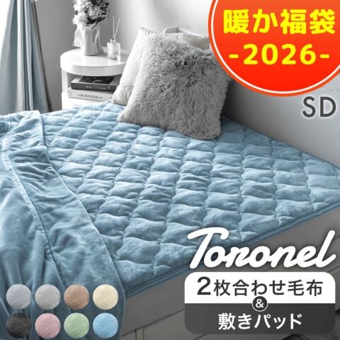 【即納】 ★2026暖か福袋★ やみつきの肌触り Toronel《トロネル》[ 2枚合わせ 毛布 + 敷きパッド ] セミダブル 襟付き 厚手 洗える ブランケット フランネル 暖かい 掛毛布 冬用 寝具 福袋 58700120〔デリケートブルー〕