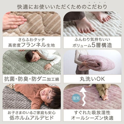 ・おしゃれで可愛いストライプフランネルキルト ・なめらかな触り心地のフランネル生地 ・洗濯機で丸洗いOK ・中綿は抗菌防臭防ダニ仕様 ・オールシーズン快適 吸放湿性に優れた生地使用 ・ズレを防止する滑り止め付き ・床暖房、ホットカーペット対応 ・お子様にも安全な低ホル |