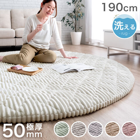 【即納】 極厚50mm 洗える カバーリング ストライプ 190cm 円形 フランネル キルトラグ 床暖房 ホットカーペット対応 ラグマット カーペット 高反発 絨毯 丸型 絨毯 おしゃれ 北欧 6110011551〔ミルクアイボリー〕