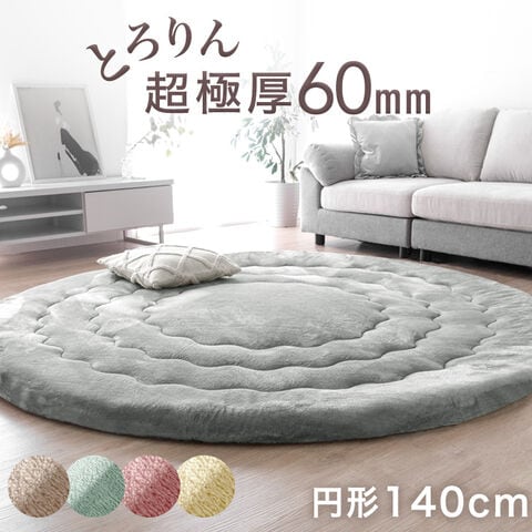【即納】 【クリアランス】 超極厚60mm とろりんラグ 円形 極細マイクロファイバー 140cm ホットカーペット対応 ラグマット とろりん 高反発 フランネルラグ 絨毯 厚手 丸型 防音 抗菌 北欧 おしゃれ 6110012612〔アッシュグレー〕