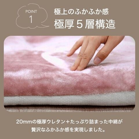 ・フカフカ&長時間座っても快適!超極厚60mm ・とろけるような肌触り 高密度マイクロファイバー ・じんわり柔らかヘタりにくい 25D高反発ウレタン ・抗菌、防臭、防ダニ加工わた使用 ・お子様がいるご家庭も安心の低ホル仕様 ・床暖房、ホットカーペット対応 ・ズレを防止する滑り止め付き |