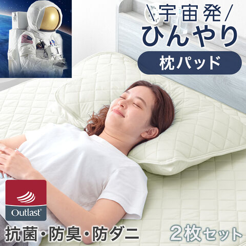 【即納】 《宇宙発》 アウトラスト 枕パッド 2枚組 接触冷感 45×65cm 洗える 防ダニ 抗菌 防臭 枕カバー 冷却マット 夏寝具 涼しい 冷感 ひんやり クール 節電 かわいい 61140149〔ミルキーアイボリー〕