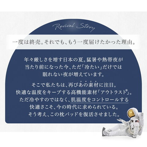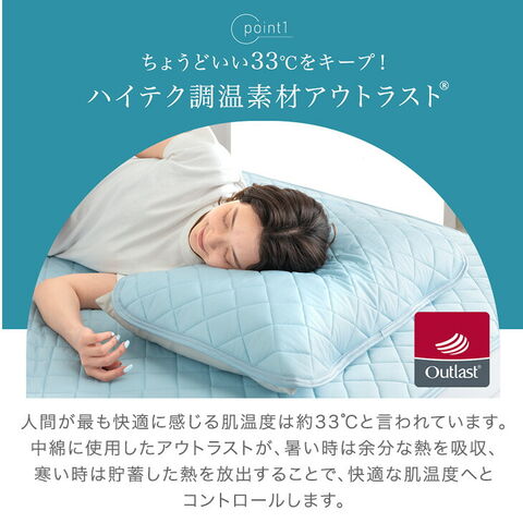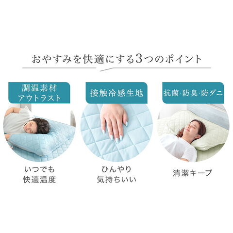 ・宇宙服にも使われる温度調整素材『アウトラスト』使用! └ちょうどいい33℃をキープ! ・ひんやり気持ちいい接触冷感生地 ・清潔に使える抗菌/防臭/防ダニ効果 ・ずれにくいゴムバンド付 |