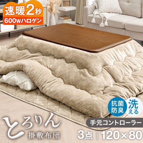 速暖2秒!とろける肌触り こたつ 3点 セット 手元コントローラー付 洗える 掛敷布団 抗菌 防臭 こたつテーブル 長方形 120 こたつセットテーブル 61140533 〔ブラウン+布団:ベージュ〕【予約】1月中旬※1/20までに出荷予定