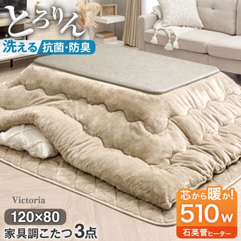 こたつ 3点セット こたつテーブル + こたつ掛敷布団 120 長方形 UV 天板 こたつセット セット テーブル こたつ布団 掛布団 こたつ掛け布団 61140534 〔ホワイトウォッシュ+布団:ペールベージュ〕【予約】1月上旬※1/11までに出荷予定