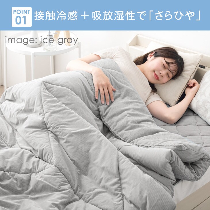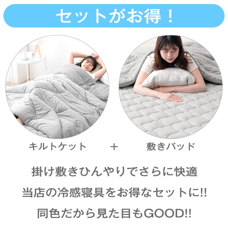 【即納】 さらひや 冷感2点セット 敷きパッド + キルトケット シングル 防臭 制菌 夏 ひんやり ケット 節電 省エネ 61140631〔パウダーブルー〕