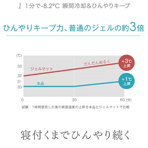 | ・夏の夜をひんやり快適にする冷却マット ・ジェルマットのように冷蔵庫で冷やす必要無し! ・人の快眠温度30℃をキープ ・塊になりにくく、ひんやりやわらかな寝心地 ・当店限定! 抗菌・防カビ仕様 ・安心の低ホルムアルデヒド ・接触冷感Q-max値0.59 ・国内の第3者機関にて性能試験を実施 ・汚れても洗える防水仕様 | ||