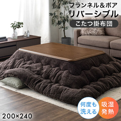 【即納】 RENEW ボア&フランネル リバーシブル こたつ掛布団 あったか ボリューム 中綿 2.1kg 洗える 長方形 200×240cm こたつ掛け布団 単品 厚手 厚掛け 大判 ふわふわ おしゃれ61300034〔ブラウン〕