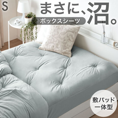 【即納】【新発売プライス】 ハマる寝心地 まさに"沼" 敷パッド一体型ボックスシーツ シングル 洗える 敷パッド一体型 ボックスシーツ パッド一体型ボックスシーツ ベッドシーツ マットレスカバー 62100053〔パールグレー〕