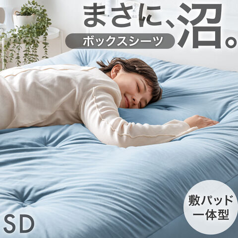【即納】【新発売プライス】 ハマる寝心地 まさに"沼" 敷パッド一体型ボックスシーツ セミダブル 洗える 敷パッド一体型 ボックスシーツ パッド一体型ボックスシーツ ベッドシーツ マットレスカバー 62100054〔ホリゾンブルー〕