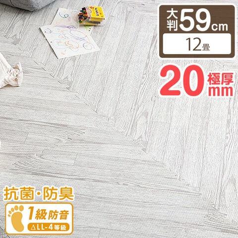 【即納】 極厚20mm ヘリンボーン柄 木目調 ジョイントマット 大判 59cm 12畳 低ホル 抗菌 防臭 防音 洗える 断熱 床暖房対応 1級防音 サイドパーツ付 フロアマット おしゃれ 99900114〔ライトグレー〕