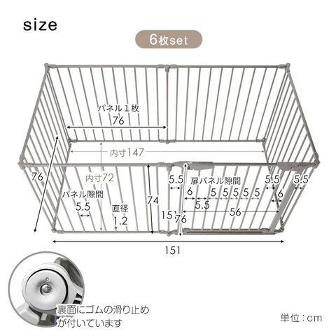 | 【完成品】 ※配送は全て宅配便(1人)での玄関渡しとなります。 ※曲線部や若干の個体差、組立などにより表記と多少の差異が生じる場合がございます。予めご了承ください。 ※商品は、モニターによって色合いが異なって見える場合があります。 ※パネルを様々な角度で設置できる作りとなっております。製品の特性上、長方形や正方形に組み立てた際の角は、完全な90度にはなりません。予めご了承ください。 ※柵の隙間は最大6cmです。超小型犬や、パピー期の場合 事前に愛犬のサイズをご確認の上ご注文いただくようお願いいたします。 ※床の素材によってはゴム製の滑り止めが効きにくい場合がございます。 ※折りたたむ向きは決まっています。逆方向に折りたたもうとすると破損する恐れがございます。 ※組み替え時にパネルの増減を行う際はパネルの片側に軸がある状態になるようパーツの取り外しを行ってください。 |
