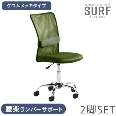 【即納】 RENEW 【クロムメッキタイプ】 オフィスチェア 2脚セット ランバーサポート付 コンパクト ワークチェア メッシュ メッシュバック 事務椅子 デスクチェア チェア 椅子 PCチェア パソコンチェアー 31500051 〔モスグリーン〕