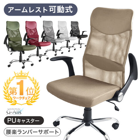 【即納】 腰楽ランバーサポート付 オフィスチェア アームレスト 可動式 床傷防止PUキャスター メッシュ ハイバック パソコンチェア ワークチェア デスクチェア オフィスチェアー おしゃれ 31500015 〔エクルベージュ〕