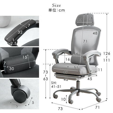 | サイズ | 外寸:幅73x奥行71〜125x高さ111〜126cm 座面高:41〜51cm |