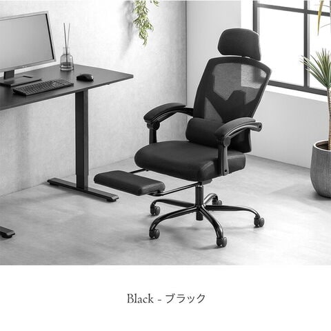 【新発売プライス】 フットレスト付き オフィスチェア リクライニング ランバー クッション 肘付き チェア デスクチェア ハイバック ワークチェア パソコンチェア メッシュ フットレスト オットマン アームレスト ヘッドレスト 31500062〔ブラック〕