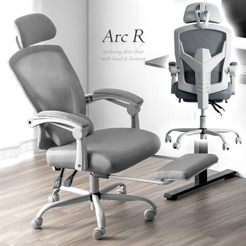 【新発売プライス】 フットレスト付き オフィスチェア リクライニング ランバー クッション 肘付き チェア デスクチェア ハイバック ワークチェア パソコンチェア メッシュ フットレスト オットマン アームレスト ヘッドレスト 31500062〔ライトグレー〕