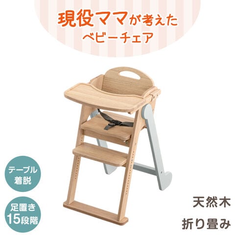 現役ママが考えた ベビーチェア 折りたたみ 天然木 テーブル付き 立ち上がり防止 高さ調整 足置き テーブル ハイチェア キッズチェア 椅子 木製 おしゃれ 65200030〔アイスグレー〕【予約】2月上旬※2/10までに出荷予定