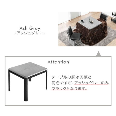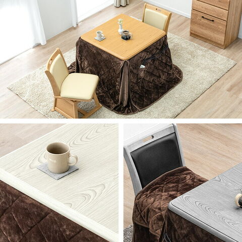 | 素材 | 【こたつ本体】 天板:MDFダイレクト印刷(UV塗装) フレーム:ラバーウッド(PU塗装) 【チェア】 座面張り地:PVC フレーム:ラバーウッド(PU塗装) 【こたつ布団】 表地・裏地・中綿:ポリエステル100% |