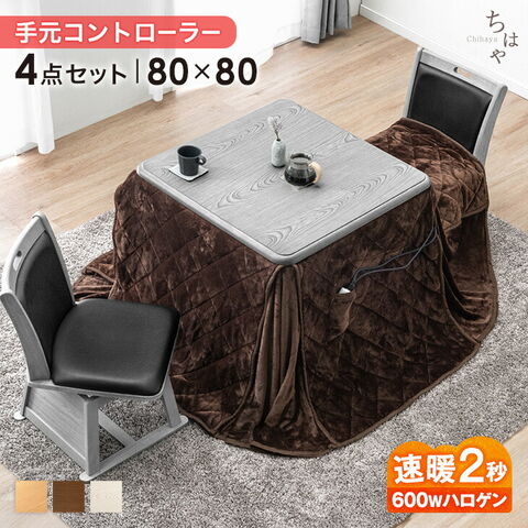 ダイニングこたつ 4点セット 2人掛け 80×80 手元コントローラー 回転椅子付き 正方形 回転いす 回転チェア こたつセット 高脚 こたつ セット 高脚コタツ 高脚こたつ 2人用 2人掛 68140073 〔アッシュグレー〕【予約】11月中旬※11/20までに出荷予定