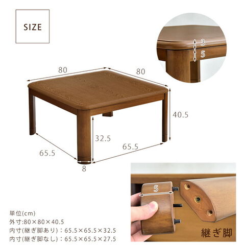 | 幅80×奥行き80×高さ35.5(+5)cm 天板厚:3cm |