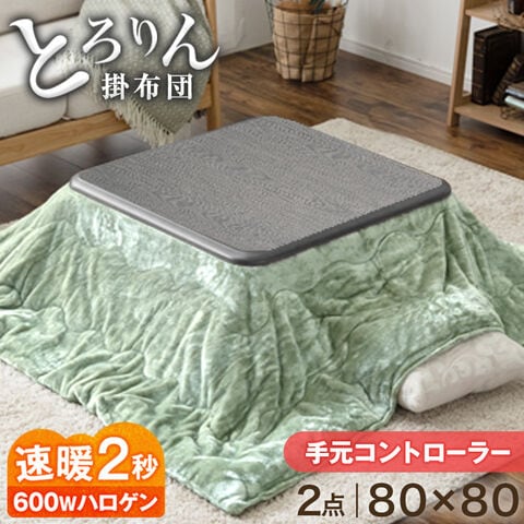 速暖2秒!600Wハロゲンヒーター とろける こたつ 2点セット 80×80 手元コントローラー 洗える 掛布団 抗菌 防臭 正方形 こたつ布団 コタツ テーブル 座卓 68140120 〔アッシュグレー×布団:モスグリーン〕【予約】12月下旬※12/31までに出荷予定