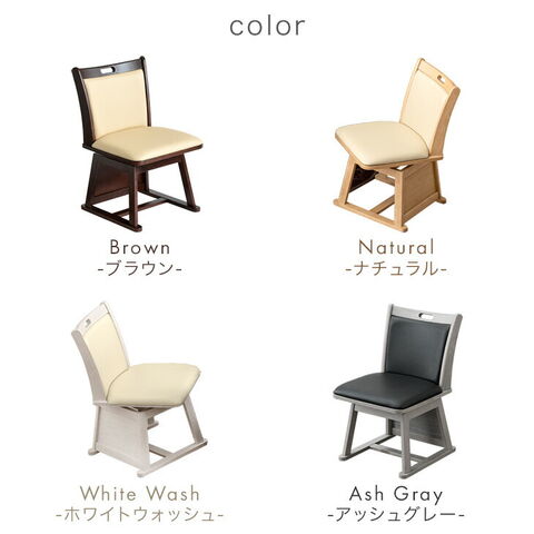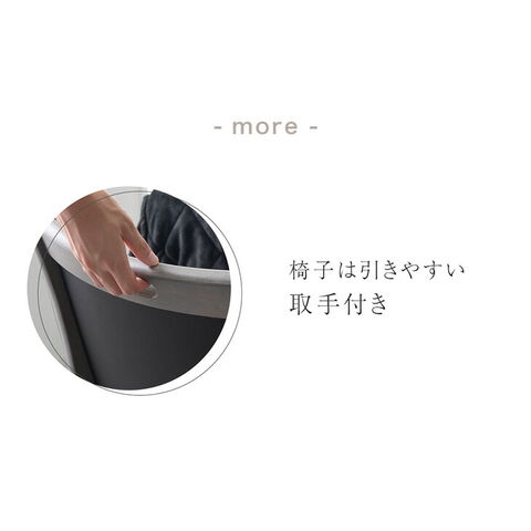 ・立ち座りが楽な回転式チェア ・長時間でも快適なもっちりクッション ・椅子を引きやすい取手付き |