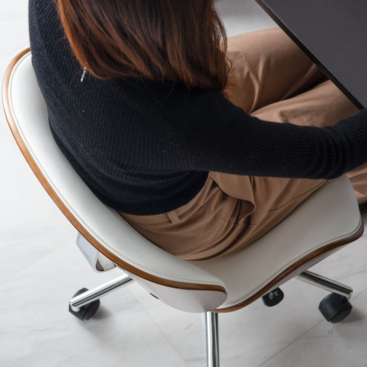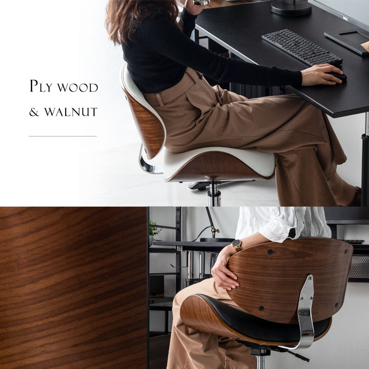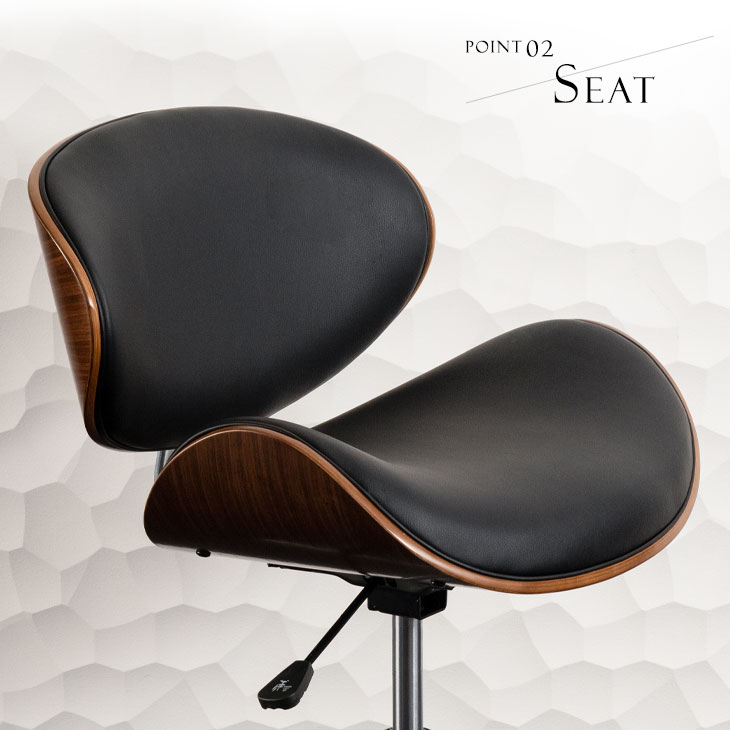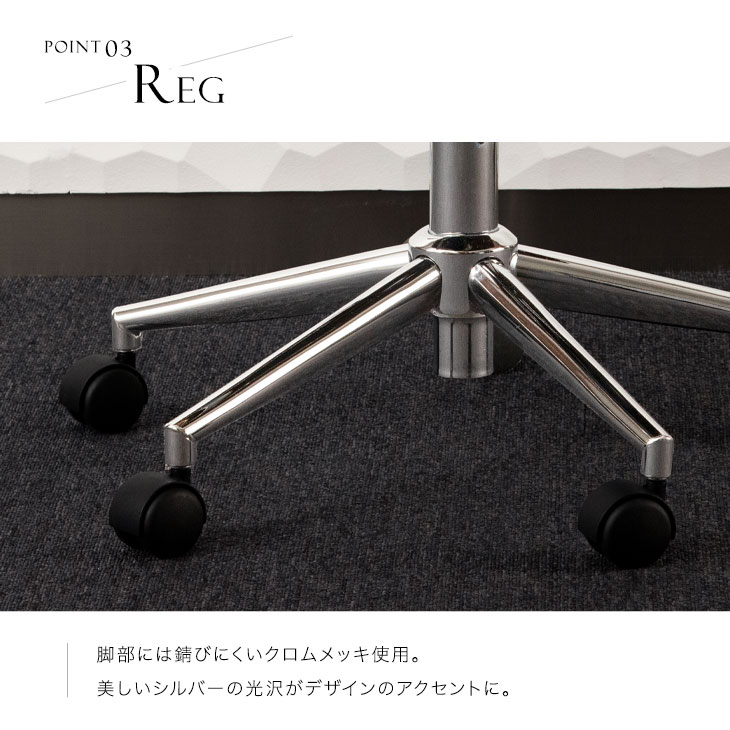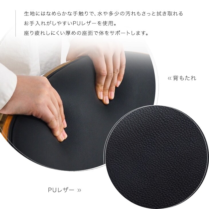 | 【張地】PUレザー 【中材】ウレタン 【木部】成形合板、シート貼り(ラッカー塗装) 【脚部】スチール(クロムメッキ塗装) 【キャスター】ナイロン |