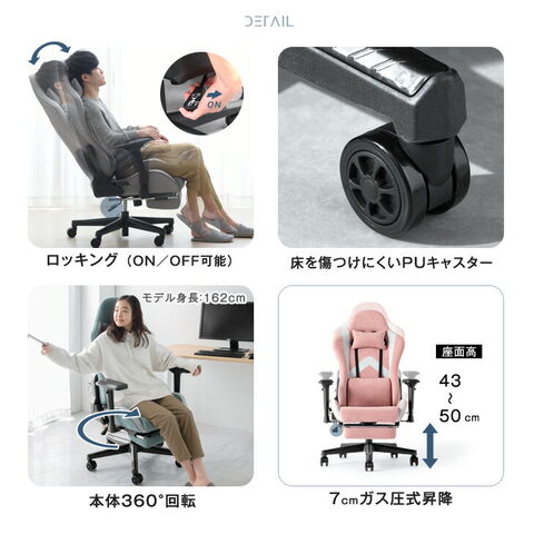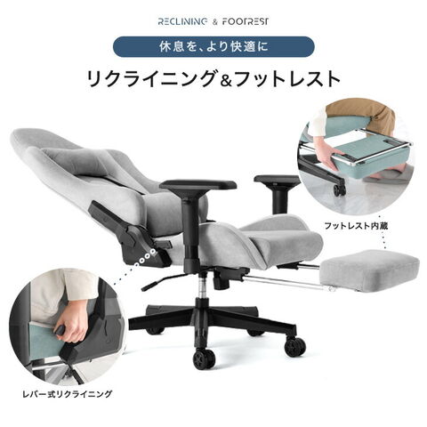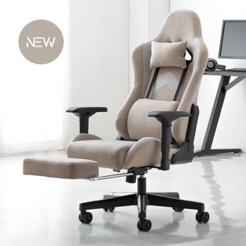 【即納】 オフィスチェア スエード調 4Dアームレスト ゲーミングチェア フットレスト ランバーサポート リクライニング ハイバック 肘掛 オットマン パソコンチェア ゲーミングチェアー 68800008〔アッシュベージュ〕