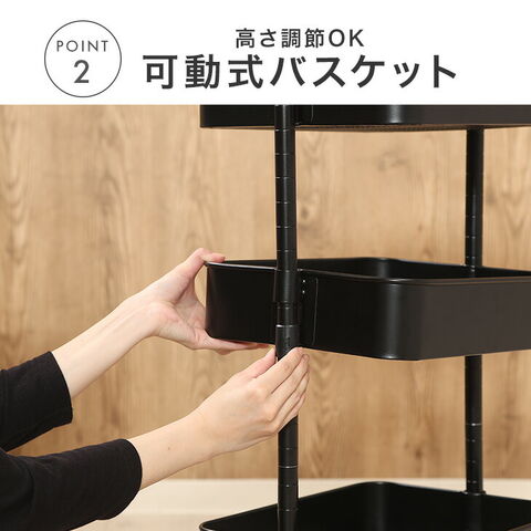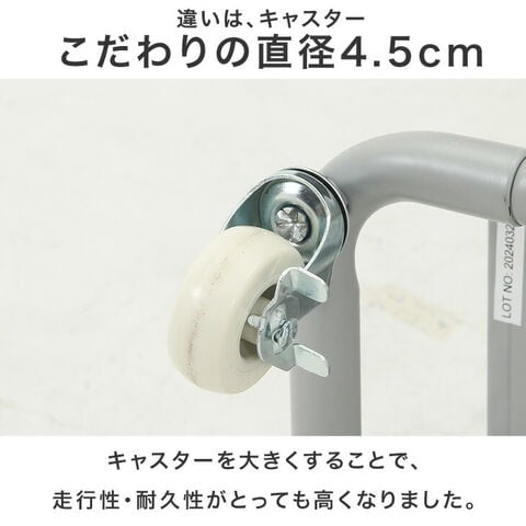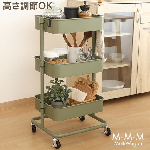 | ・用途に合わせて使えるマルチワゴン ・収納棚は入れるものに合わせて高さ調節可能 ・キャスターにはストッパー付き(4個中2個)。 ・キャスター直径はこだわりの大きめ4.5cmで安定稼働、高耐久。 |