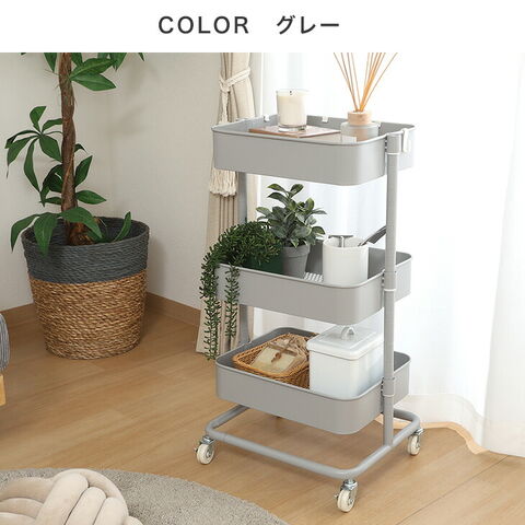 違いはキャスター4.5cm 高さ調節OK マルチワゴン 3段 キャスター付き キッチンワゴン 収納ボックス ラック バスケット スチールラック ランドリー おもちゃ箱 ストッパー スリム 70600000〔グレー〕