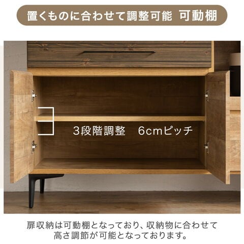 ・ヴィンテージ加工を施した天然木パイン ・蓋付き家電の収納にぴったりなスライド棚 ・軽い力で開閉できるスライドレール ・置く物に合わせて高さが変えられる可動棚 ・配線らくらく2口コンセント&コード穴 ・スタイリッシュなスチール脚&取っ手 ・お掃除ロボット対応 脚高15cm ・間仕切りとして使える背面化粧仕上げ ・届いてすぐに使える完成品 ・安心の日本製 -大川家具- |