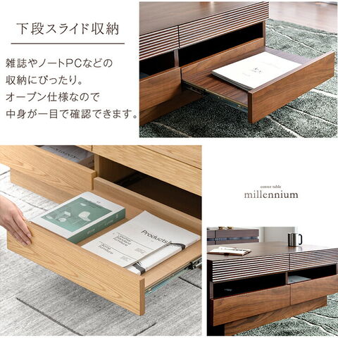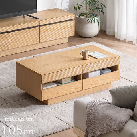 センターテーブル 完成品 アッシュ 無垢 幅105 木製 天然木 テーブル ローテーブル リビングテーブル センター リビング 引き出し 北欧 モダン 高級感 71020061〔ナチュラル〕