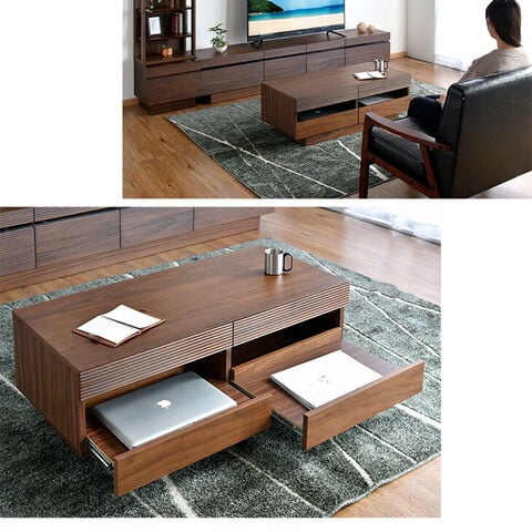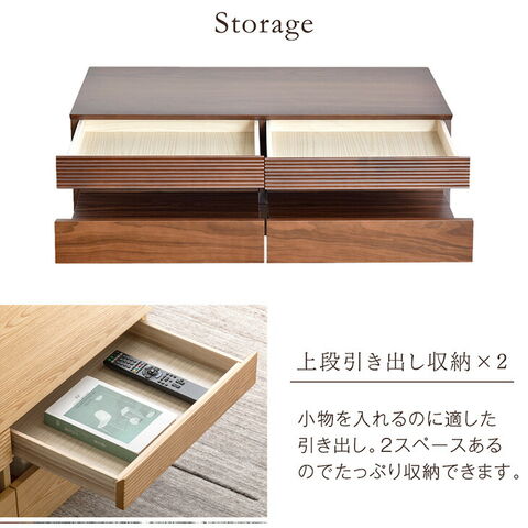 ・前面ルーバー部にアッシュ無垢、天板に突板を使用 ・中身が見やすいオープン構造の下段スライド収納 ・小物を置ける背面オープンスペース ・床キズ防止の裏面クッション付き |