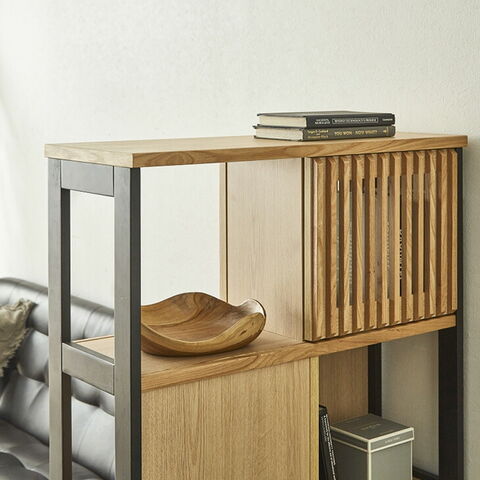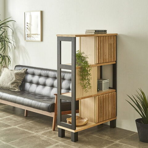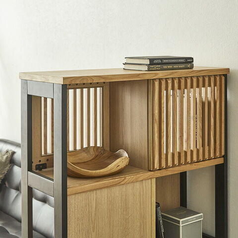 | 素材 | 天板、前板:天然木工芸突板 側板:プリント紙化粧繊維板(ウレタン塗装) ルーバー:無垢材 扉:ガラス |