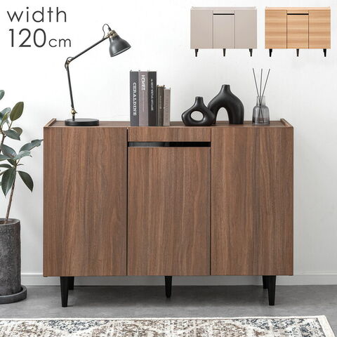 キャビネット 傷に強いメラミン天板 サイドボード 完成品 幅120cm 木製 サイドチェスト 北欧 収納棚 飾り棚 収納 リビング収納 収納家具 扉付き 脚付 木目調 おしゃれ 71050015【超大型】〔ウォールナット〕