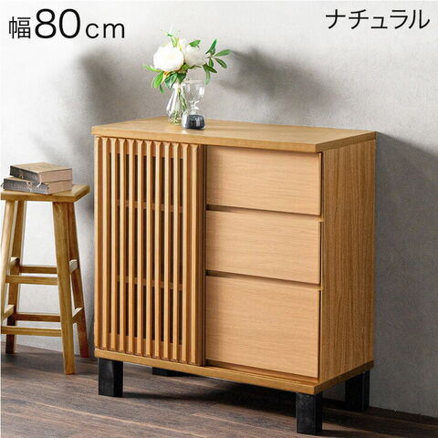 完成品 サイドボード 幅80cm キャビネット チェスト サイドチェスト リビング収納棚 収納家具 スリム ラック 扉付き 脚付き 引出し付き 木目 無垢 天然木 木目調 北欧 おしゃれ【超大型】71050033〔ナチュラル〕