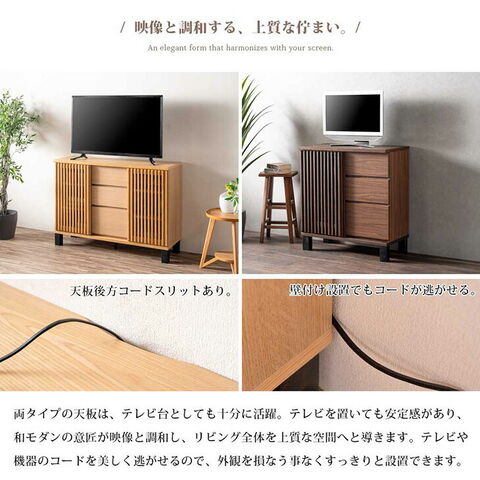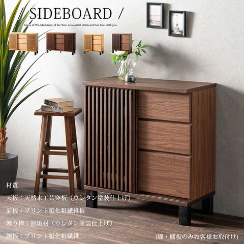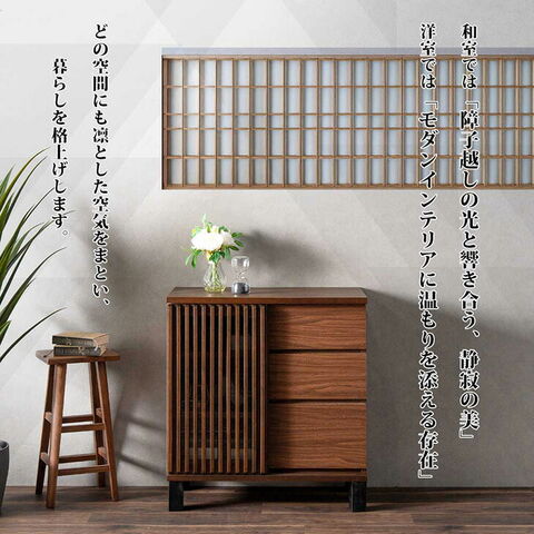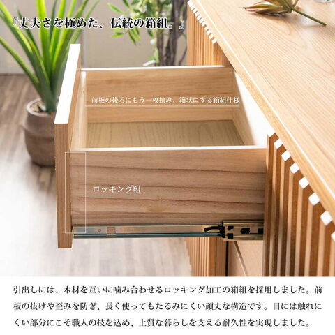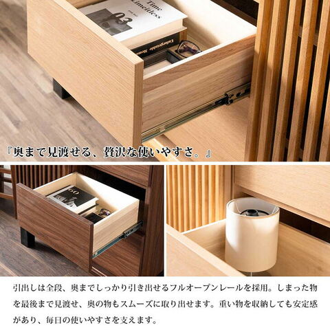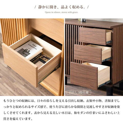 | 素材 | 天板:天然木工芸突板 前板、側板:プリント紙化粧繊維板 ルーバー(加飾部):無垢材(ウレタン塗装仕上げ) ルーバー(扉裏面):ガラス |