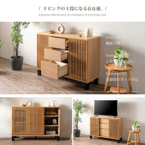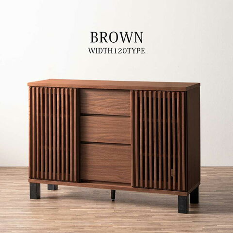 完成品 サイドボード 幅120cm キャビネット チェスト サイドチェスト リビング収納棚 収納家具 スリム ラック 扉付き 脚付き 引出し付き 木目 無垢 天然木 木目調 北欧 おしゃれ【超大型】71050034〔ブラウン〕