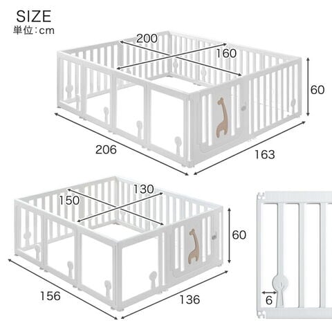 【即納】 【新発売プライス】 クリア ベビーサークル ハイタイプ 130×150 高さ60cm 可愛いキリンさん扉 滑り止め付 ジョイント式 ドア 扉付き ベビーガード キッズサークル プレイヤード コンパクト 72500009〔130×150cm〕