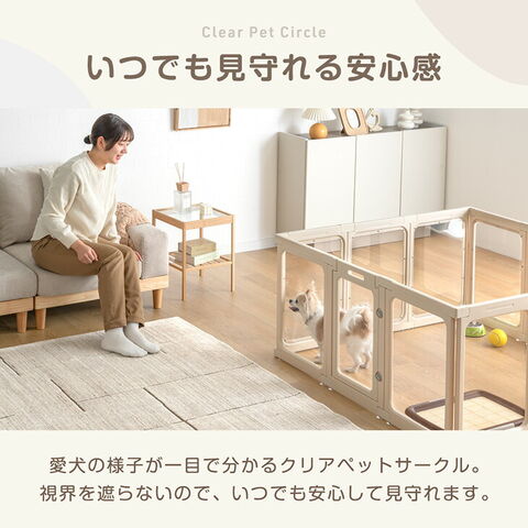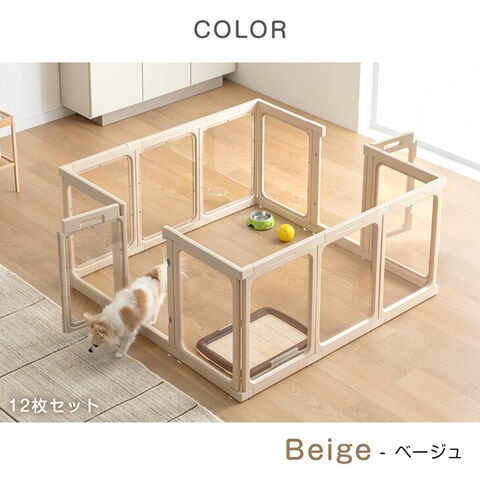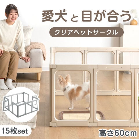 【即納】【新発売プライス】 愛犬と目が合う クリア ペットサークル 15枚セット 組み替え 2ドア 扉 半透明 ドッグサークル ペットケージ 小型犬 中型犬 滑り止め 室内 高さ 60cm 拡張 仕切り おしゃれ 72500016〔ベージュ〕