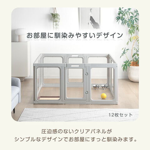 愛犬と目が合うクリアペットサークル ・中の様子が一目で分かるクリア仕様 ・透明だから圧迫感なくお部屋に馴染みやすい ・おしゃれなニュアンスカラー ・お部屋やペットの成長に合わせて組み替え自由 ・間仕切り可能で多頭飼いやお部屋分けに便利! ・設置簡単!ジョイント式 ・出入りの自由度が高い2ドア仕様 ・軽量で扱いやすい樹脂製(HDPE素材) ・安心の滑り止め吸盤付き |